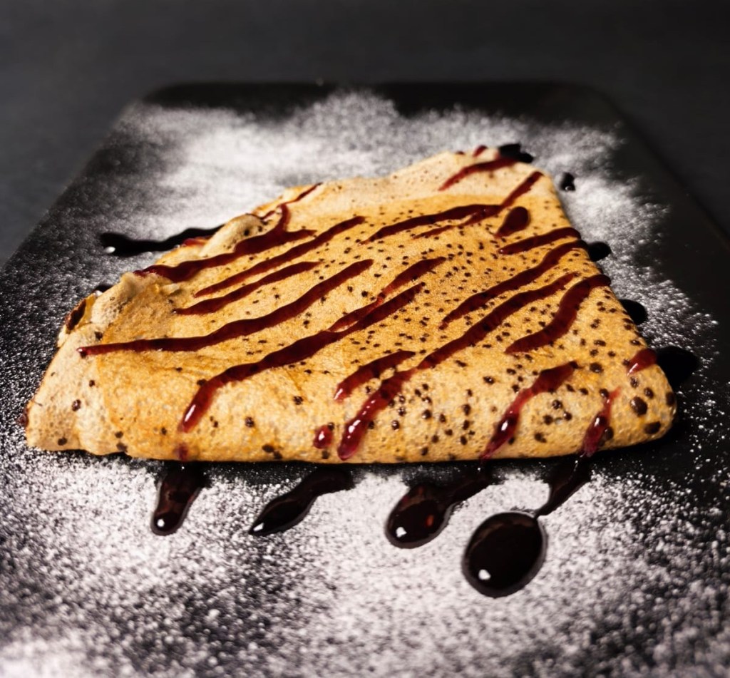 lapte 100ml, făină 30g, Nutella 30g, topping de fructe de pădure 20g, ouă 10g, zahăr 5g.