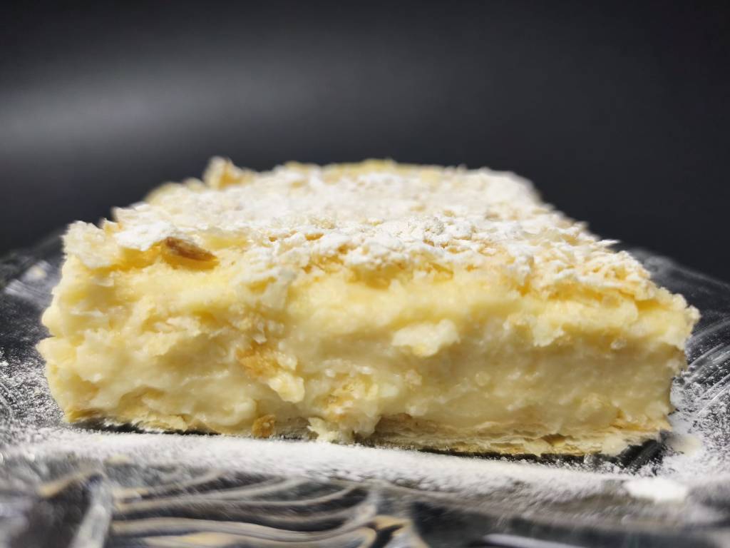 lapte 125ml, ouă 50g, zahăr 30g, aluat foietaj 25g, amidon 15g, vanilie.